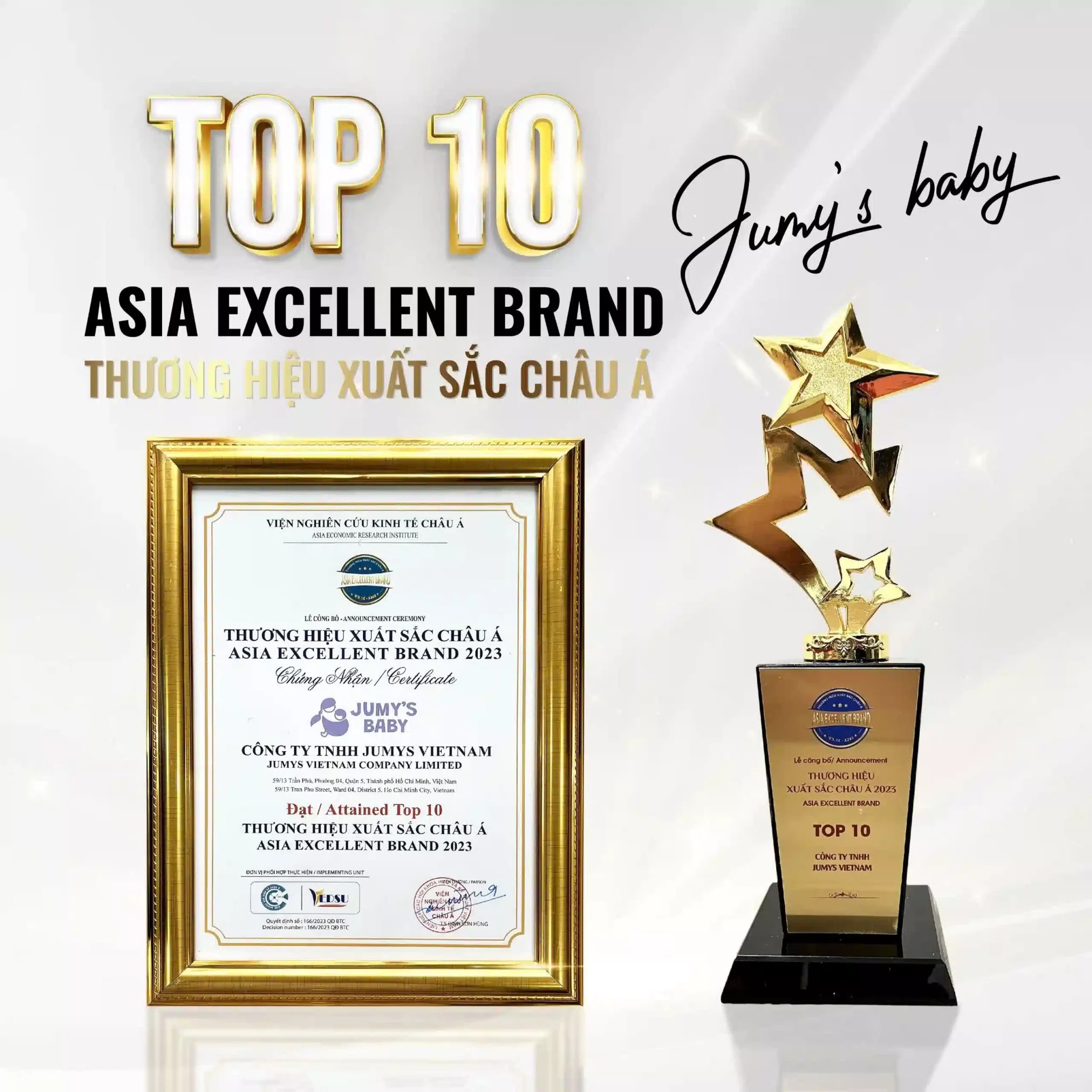 Danh hiệu "Top 10 Thương Hiệu Xuất Sắc Châu Á" là minh chứng cho những nỗ lực không ngừng của Jumysie trong việc nâng cao chất lượng sản phẩm và dịch vụ. Đây là động lực để Jumysie tiếp tục phát triển, trở thành người bạn đồng hành không thể thiếu của các bậc phụ huynh, góp phần xây dựng một cộng đồng hạnh phúc và khỏe mạnh.